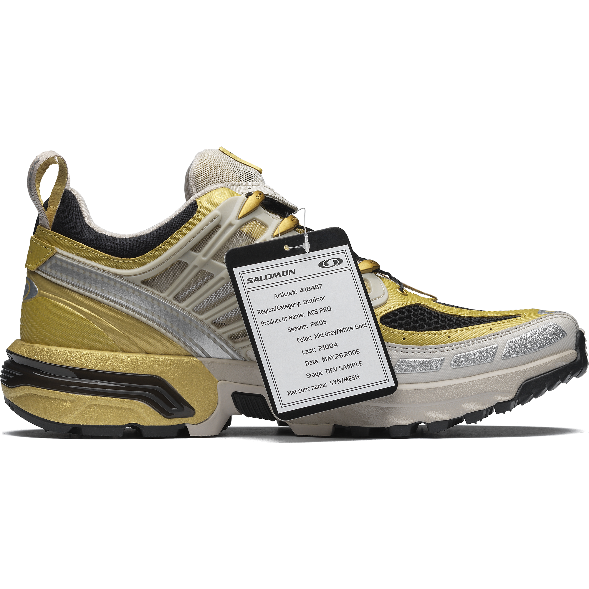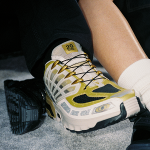 For its 20th anniversary Salomon is releasing the limited-edition Golden Archive ACS Pro. Based on a never-before-released colorway. this model boasts a transparent chassis. carbon-textured cage and special logo. As a nod to the one-off nature of this release. each model is outfitted with a sample tag and commemorative gold and black shoe bag.