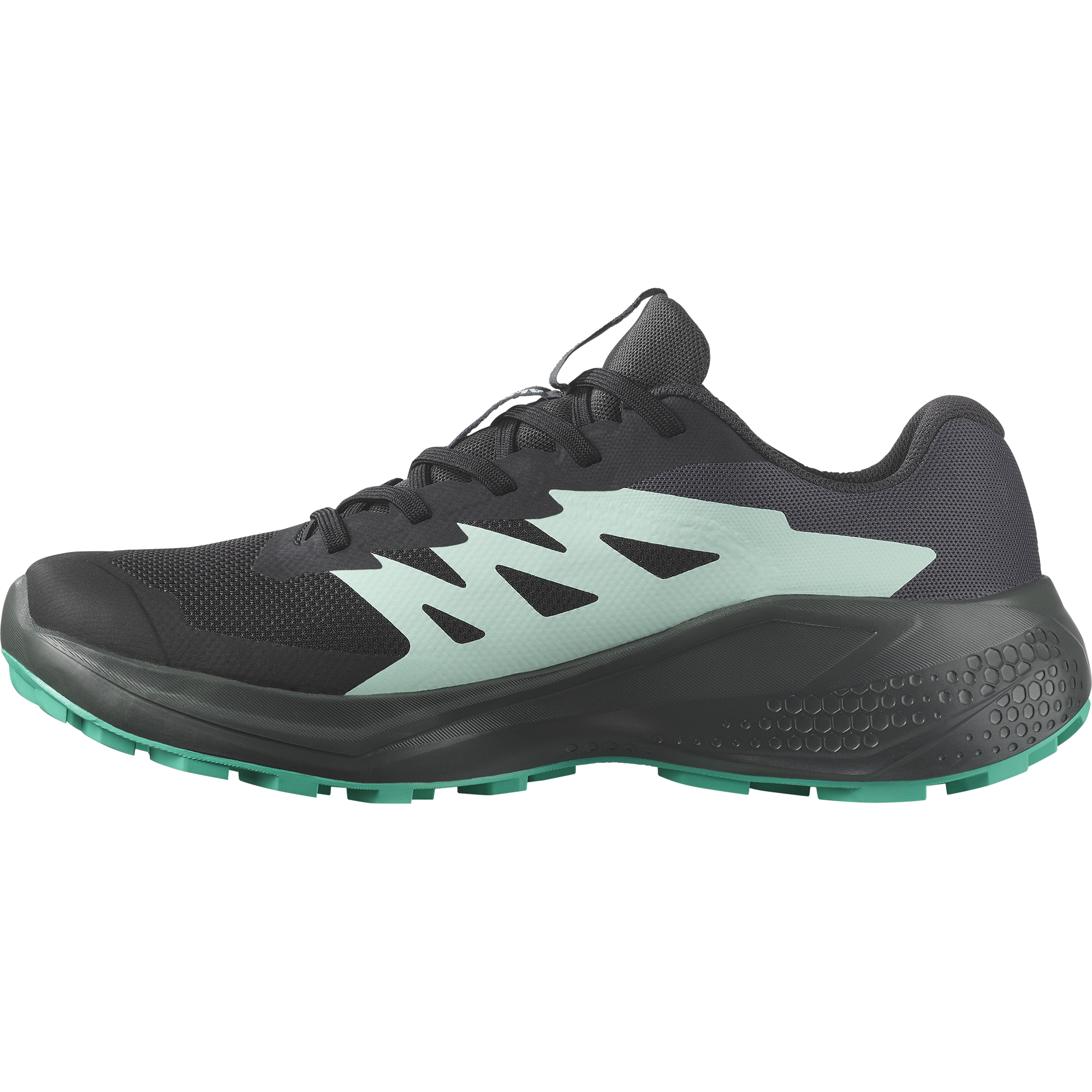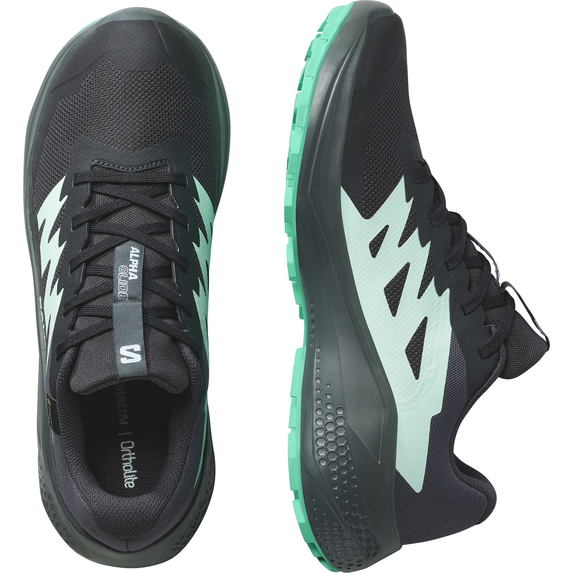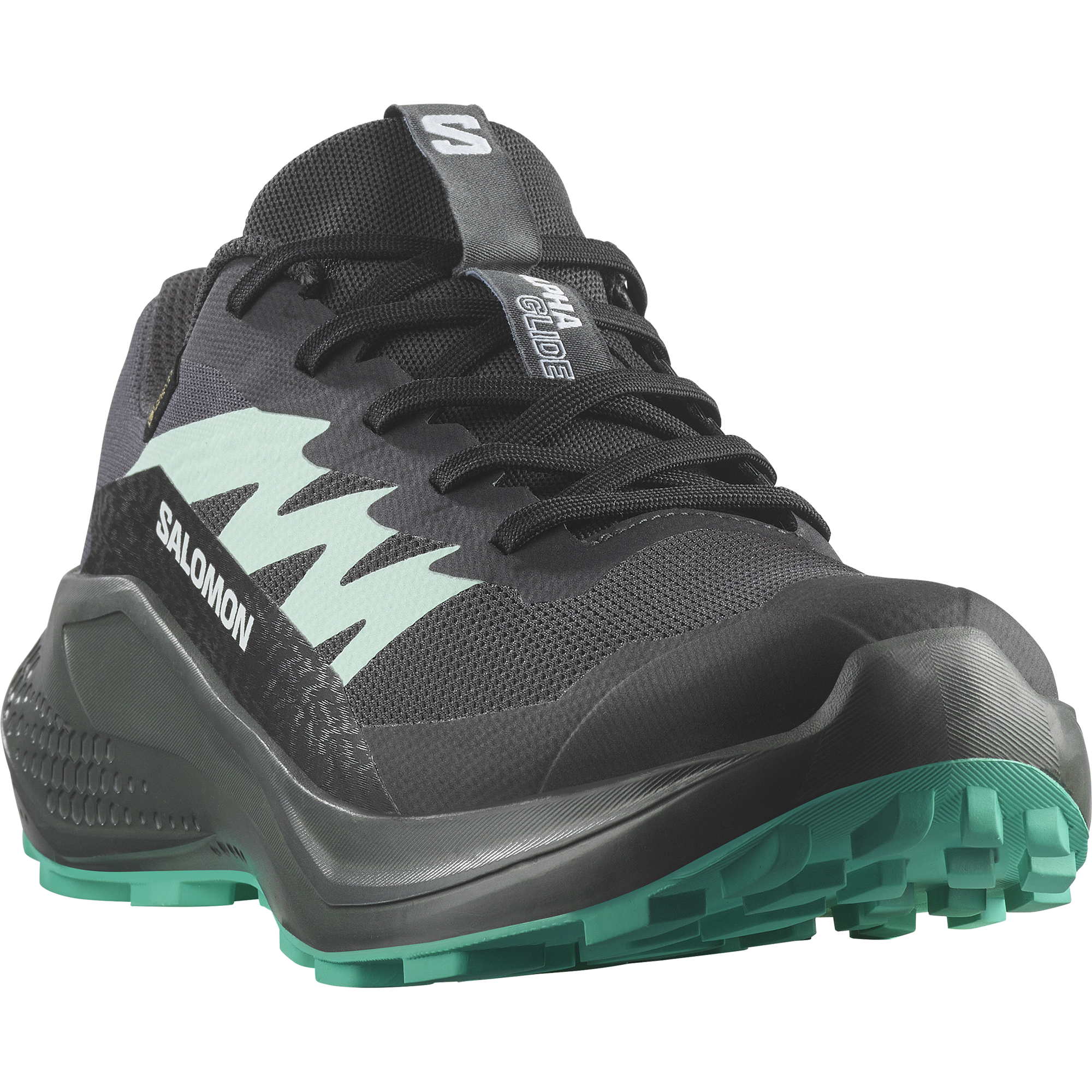 Alphaglide is a versatile. do-it-all trail shoe that scores high on cushioning. comfort and terrain adaptability. With a balanced midsole and foot-hugging hold. it also has anti-debris mesh on the upper to keep the treasures of trail adventuring out of your shoes. Versatile and reassuring in grip. it adapts to a wide variety of trail terrains.