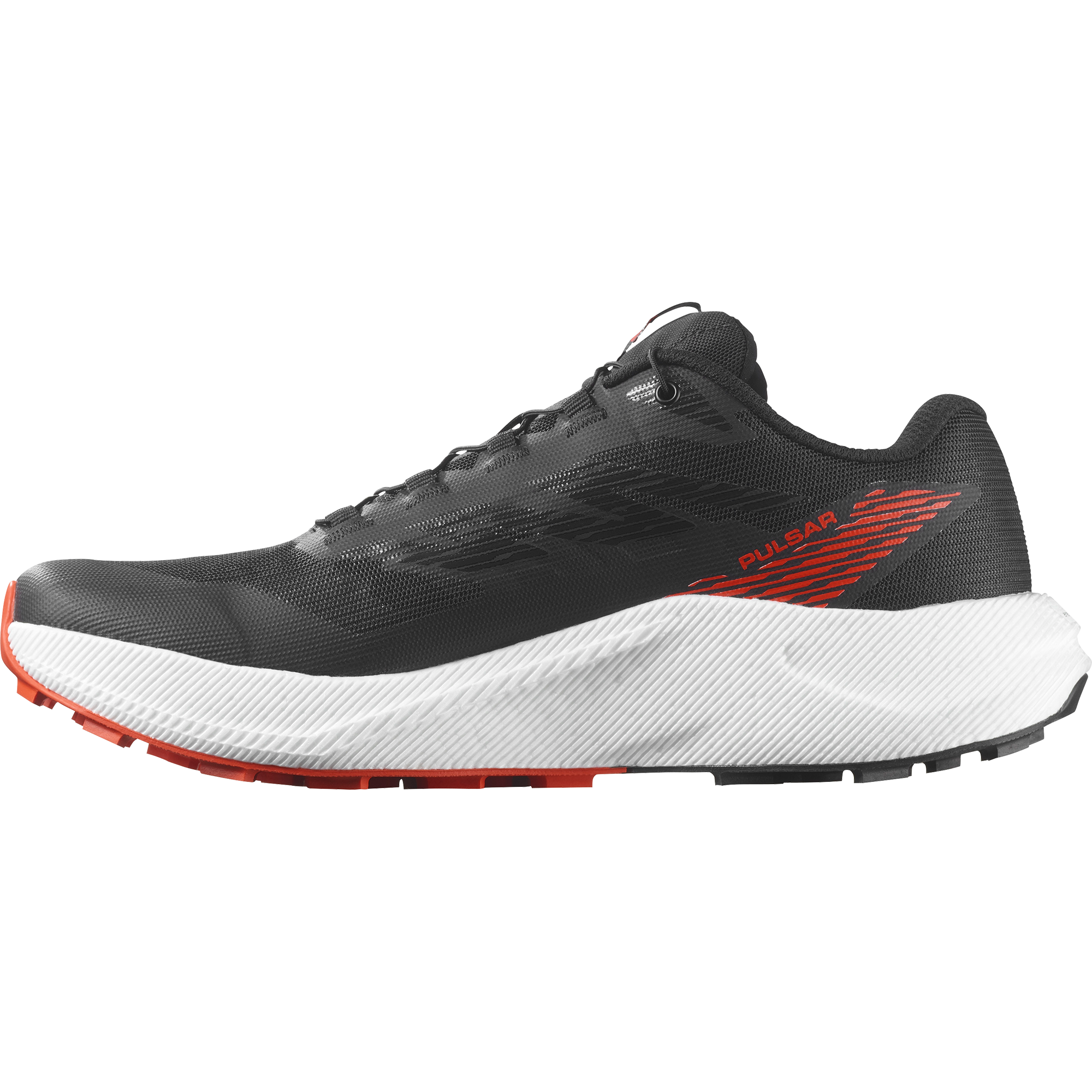 Pump up the pace and smash your personal best with PULSAR. a trail running shoe enhanced with athlete feedback. Delivering exceptional propulsion and cushioning thanks to its superfoam midsoles. and featuring Salomon-grade grip and stability. this shoe is fit to tackle any trail. no matter how long or technical.