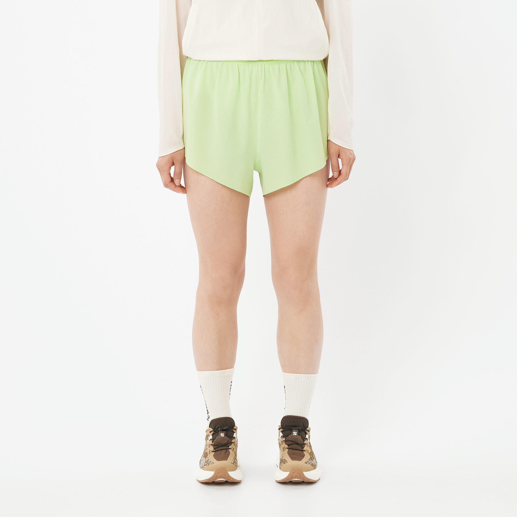 Our most streamlined. minimal split running shorts with fast-drying GridFlow fabric. secure zippered phone pocket and smart bounce-free storage for gels. built so light they feel practically weightless.