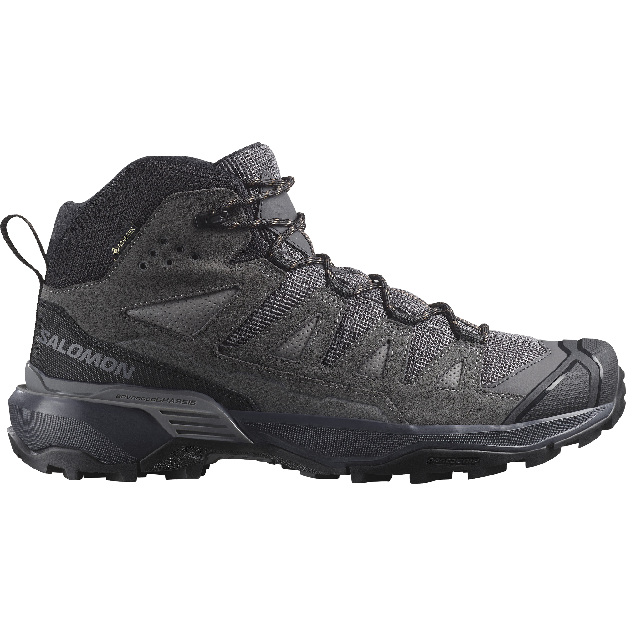 The X ULTRA 360 LEATHER MID GORE-TEX takes the proven protection of leather and shakes it up for the new outdoors. Based on a legacy of X ULTRA icons. this hiking shoe delivers all-terrain grip. stability and waterproof protection. however you choose to adventure. With a cushioned midsole. GORE-TEX membrane and robust leather where you need it.