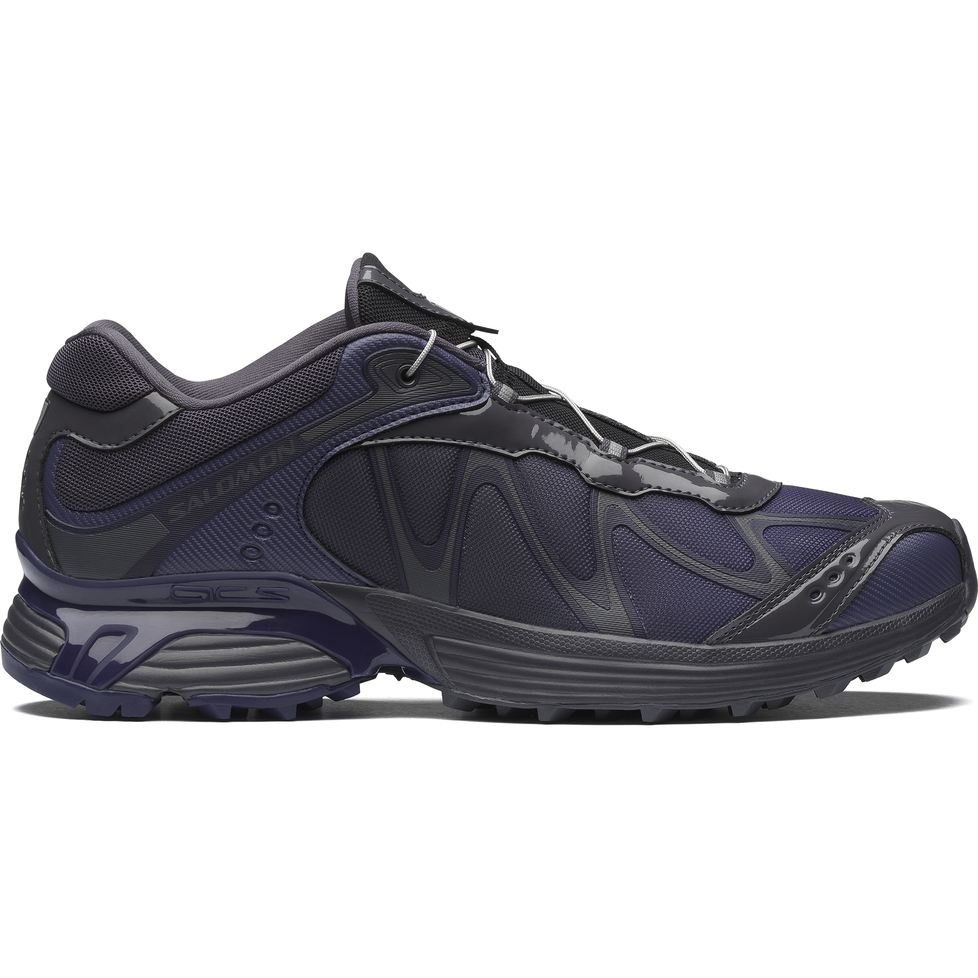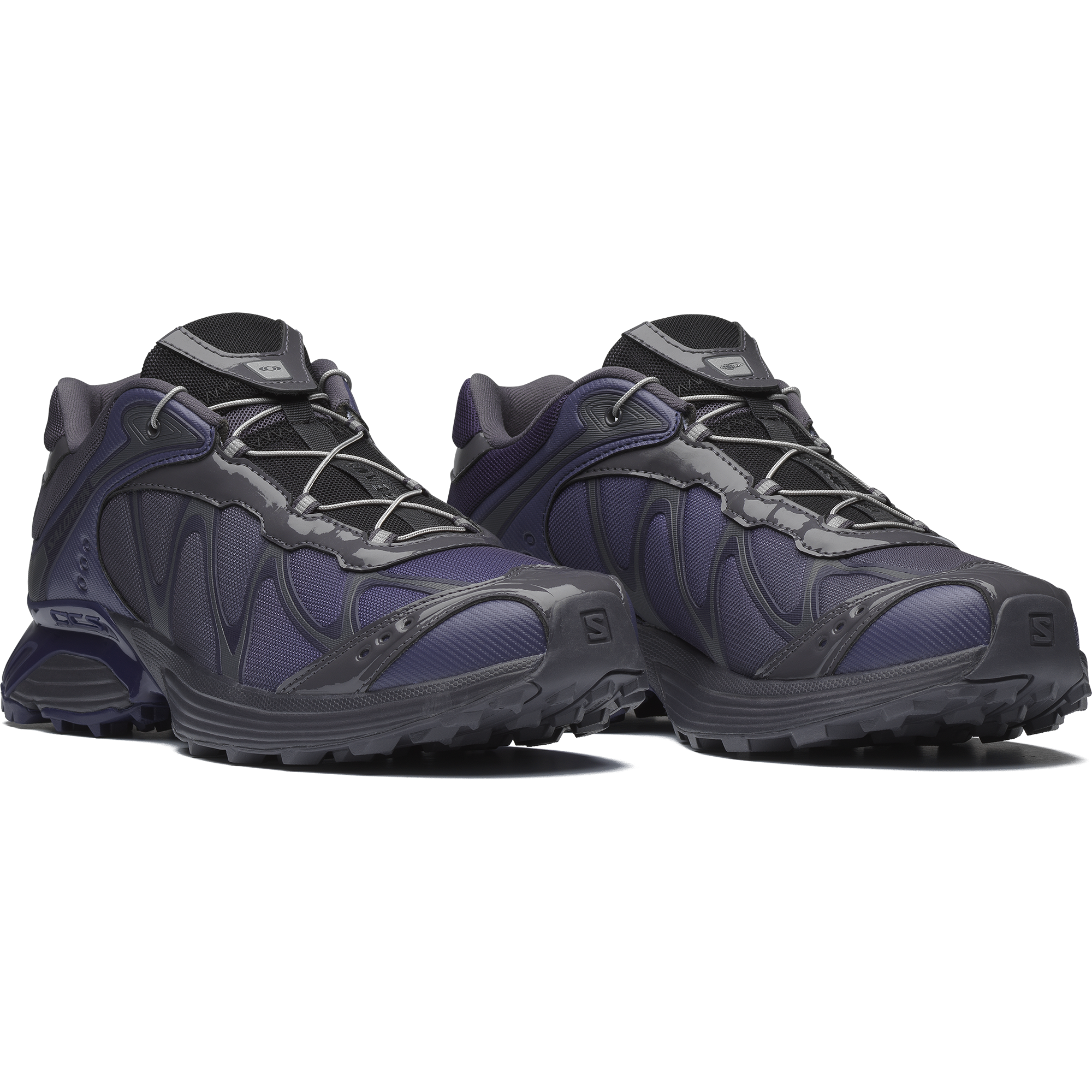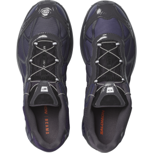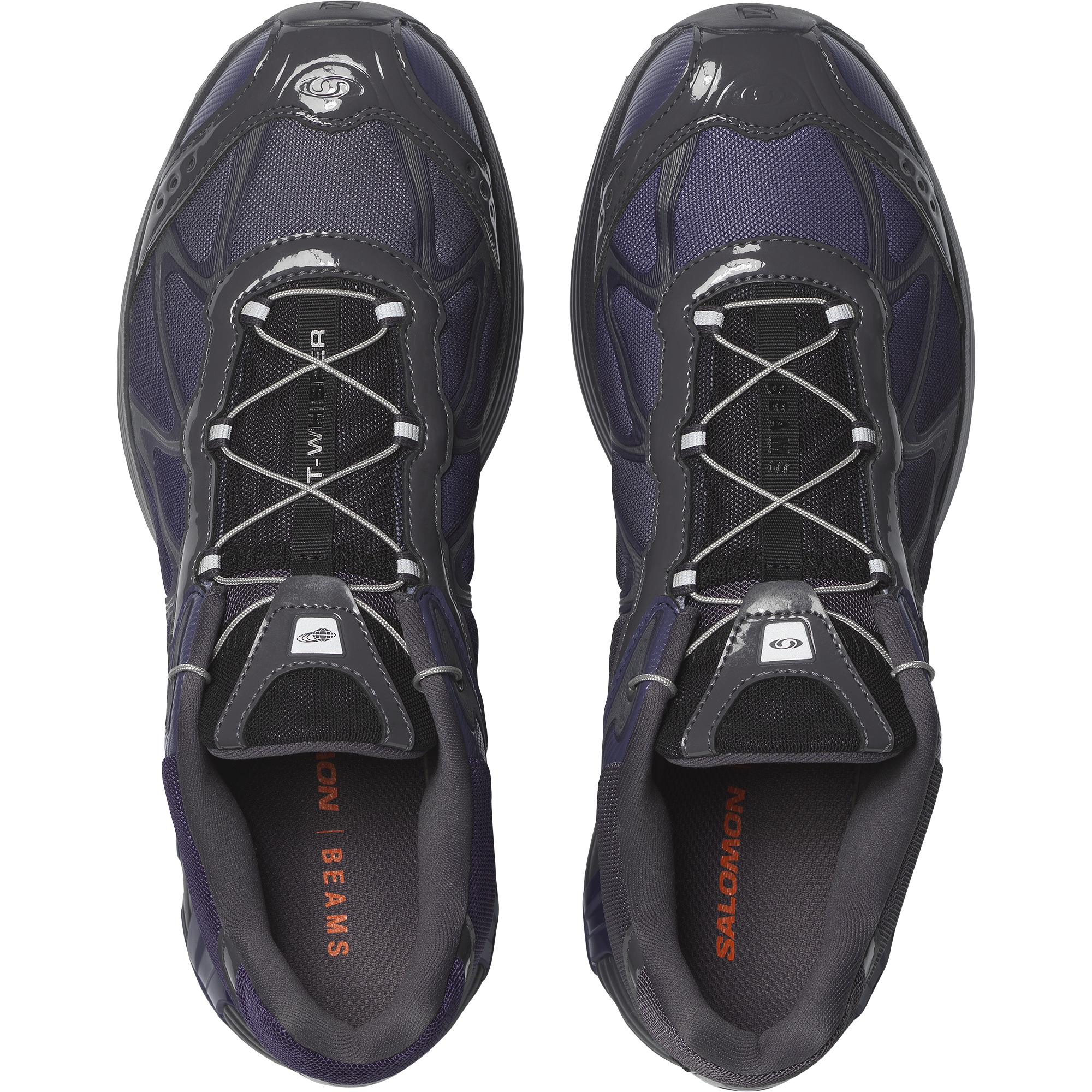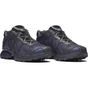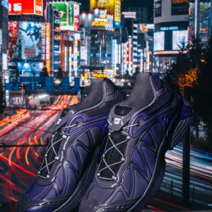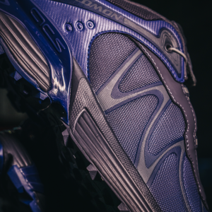 The latest iteration of the iconic XT-Whisper blends the DNA of outdoor sports leader Salomon with a technological design aesthetic from BEAMS. The XT-Whisper BEAMS boasts glossy materials and an asymmetrical color scheme with a futuristic purple gradient. conjuring an inorganic. tech-inspired design reminiscent of next-gen electronics.